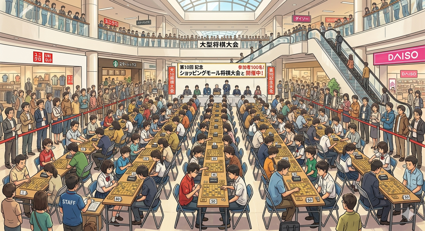 本教室の定期交流戦の源流は、つくば市の大型ショッピングセンターの「ララガーデンつくば」で開催した「熱戦将棋バトル」という毎月の将棋大会です。現在、定期交流戦は30名規模の大会となっており、大手のショッピングセンターで開催すれば、一般参加者を加算すれば50~100名規模のイベントとなります。将棋大会とショッピングセンターは大変相性が良くて、小さな会議室で大きな集客を得られ、開催時間中は保護者の買い回りで大きな消費を生むことができます。現在の定期交流戦は地域の公民館で実施しており、会場が手狭になりつつあります。毎月開催できる会場があればぜひご相談ください。ショッピングセンター(イオンモール、ららぽーと、アリオ、イーアス等)の大型店で開催することは可能です。準備期間として3カ月前にご連絡をお願いしたします。