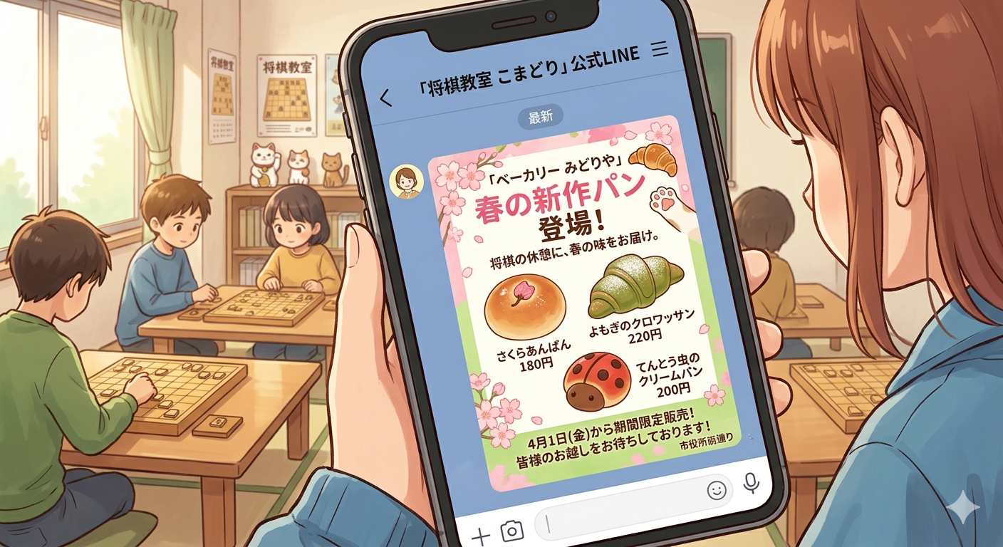 新商品の発売や季節限定商品などの告知を公式ラインで配信することができます。商品が好評であれば、定期交流戦や五大タイトル戦の景品として採用させて頂くこともあります。我々にとっても店舗さんのお客様に将棋教室の存在を知って頂くきっかけにもなるので大変ありがたいことです。